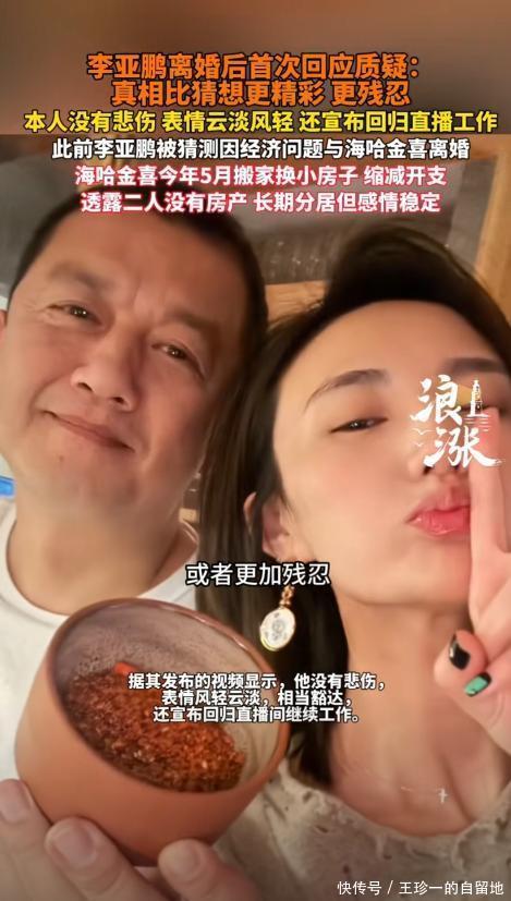 在两人离婚后,大家看到李亚鹏继续直播带货赚钱,大家也想知道海哈金喜的情况。