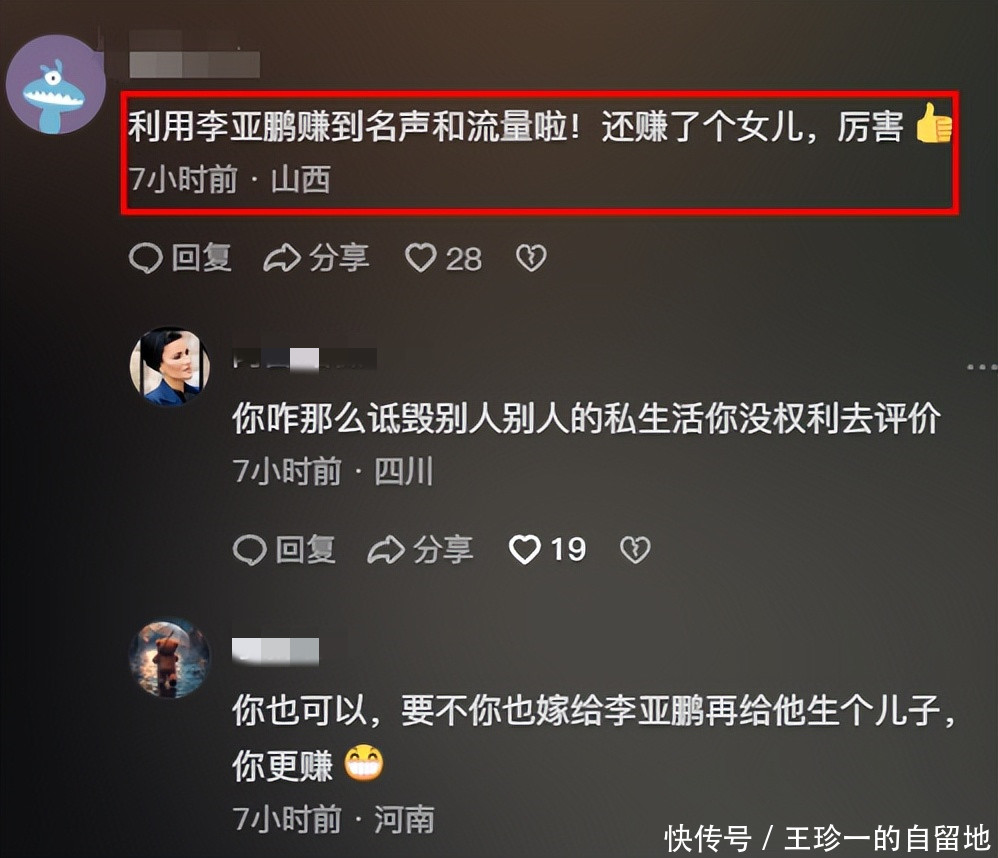 有网友说海哈金喜利用李亚鹏赚到了名声、流量,还有一个女儿。