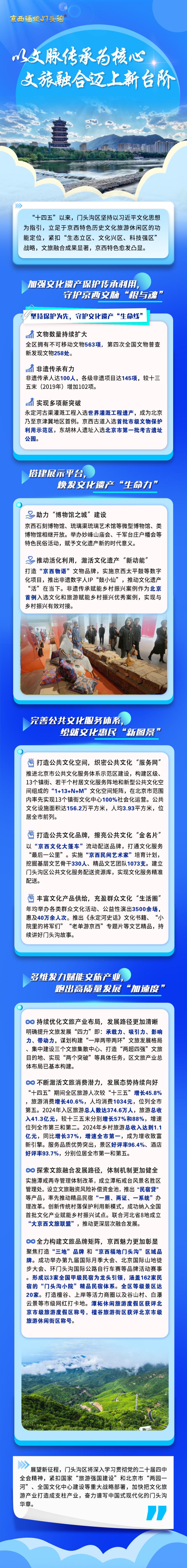 “十四五”以来,门头沟区坚持以习近平文化思想为指引,立足于京西特色历史文化旅游休闲区的功能定位,紧扣“生态立区、文化兴区、科技强区”战略,文旅融合成果显著,京西特色愈发凸显。