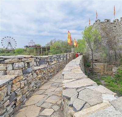 r崮顶之上,平坦开阔,古建筑遗迹清晰可见,仿佛大自然精心雕琢的空中花园。在这里,游客们欣赏沉浸式演出,仿佛置身2000多年前的金戈铁马;走进小吃店,品尝一口承载乡愁记忆的沂水豆腐,口感细腻,回味无穷;漫步崮顶,群崮拱卫,烟岚缥缈,心旷神怡……