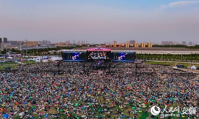 台下观众或轻声和唱,或挥舞荧光棒,与舞台周边飘香的美食展销会共同构成了一幅充满烟火气的夜间消费图景。